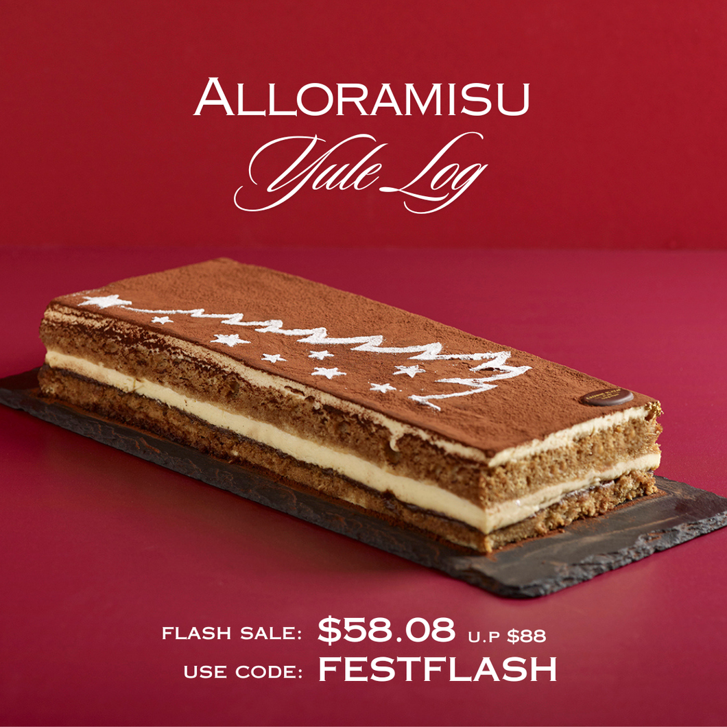 A festive twist on the beloved tiramisu, this Yule Log layers delicate savoiardi sponge with rich mascarpone mousse, crunchy hazelnut praline, and bold coffee espresso. A perfect harmony of creamy, nutty, and coffee flavors.